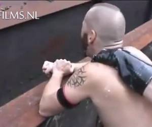 In de buiten lucht word de jonge man met de enorme ballen, met een vuist extreem diep in zijn anus geneukt Extreme , Extreem met een vuist anal geneukt