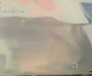 Als hij de grote lul uit de anus trekt druipt de sperma er uit