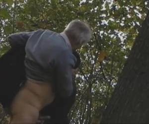 Opa word lekker gepijpt in het bos door een knappe jonge homo, maar wie filmt? Amateur , Opa gepijpt in het bos