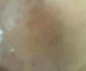 Ze kijkt met haar zaad vragende ogen in de camera als ze hem pijpt