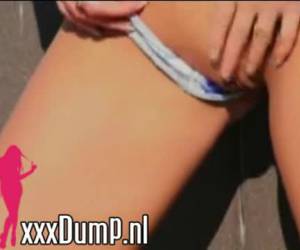 Een blondje staat buiten over haar kutje te wrijven. Hij moet lekker nat worden voor die harde pik. Blondje wrijft over kutje