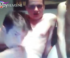 De drie geile jongens hebben sex voor de webcam, terwijl de een zijn penis aftrekt wordt zijn vriend met een pijn vertrokken gezicht anal geneukt. En tussen door geeft hij hem een pijpbeurt. Amateur , Anal neuken aftrekken en een orgasme krijgen voor de w